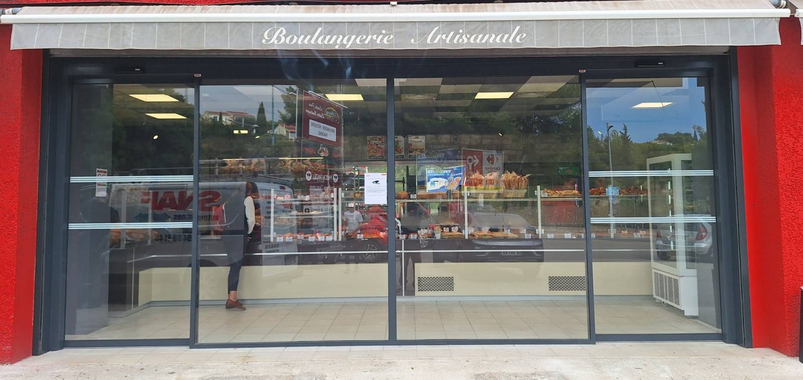La porte automatique est équipée de radars de détection réglable et de sécurité pour la protection des personnes. Son mouvement permet une fluidité de la clientèle sans perdre la chaleur du chauffage en hivers ou le froid de la climatisation en été.